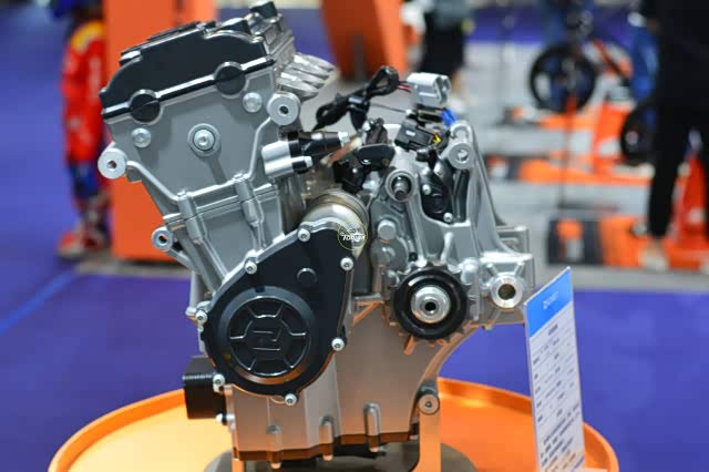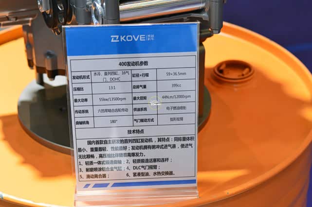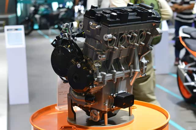 凯越这台399cc排量的,直列四缸水冷发动机尺寸真的很小,甚至可以用“迷你”来形容,看过现场的朋友应该都有这种感觉,凯越也宣传这台发动机是同排量体积最小的。小尺寸的发动机带来的好处有很多,这里就不一一列举了!