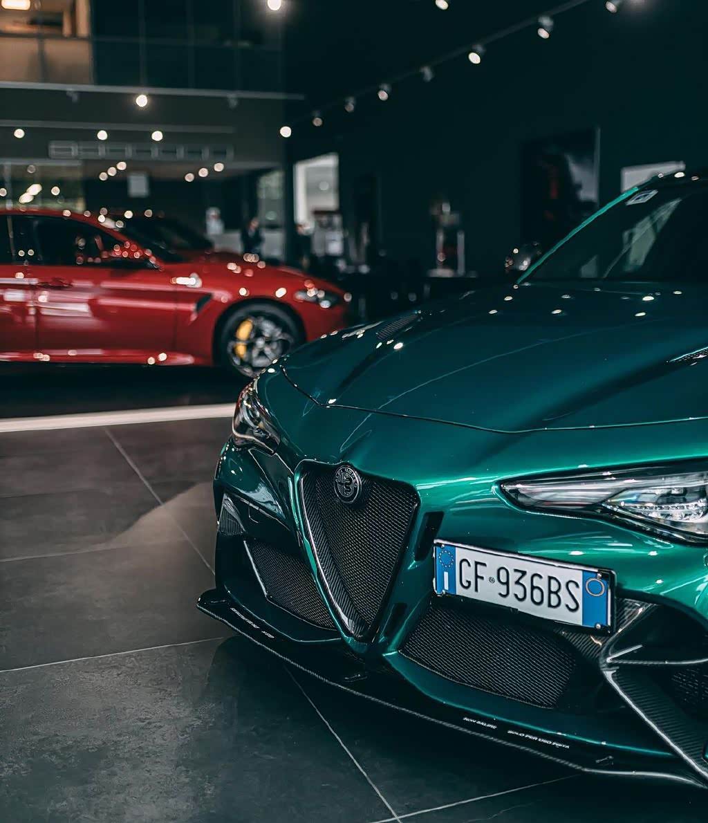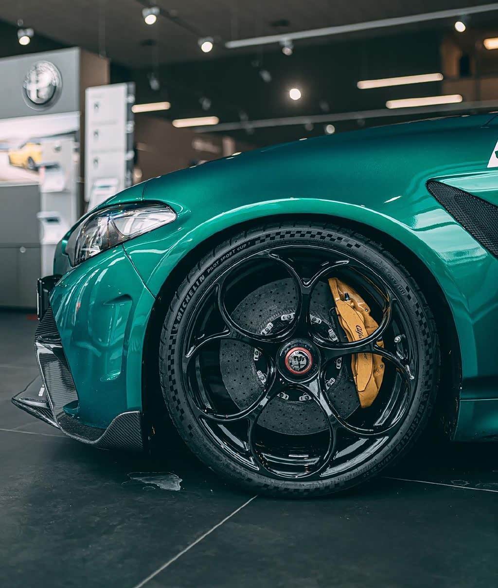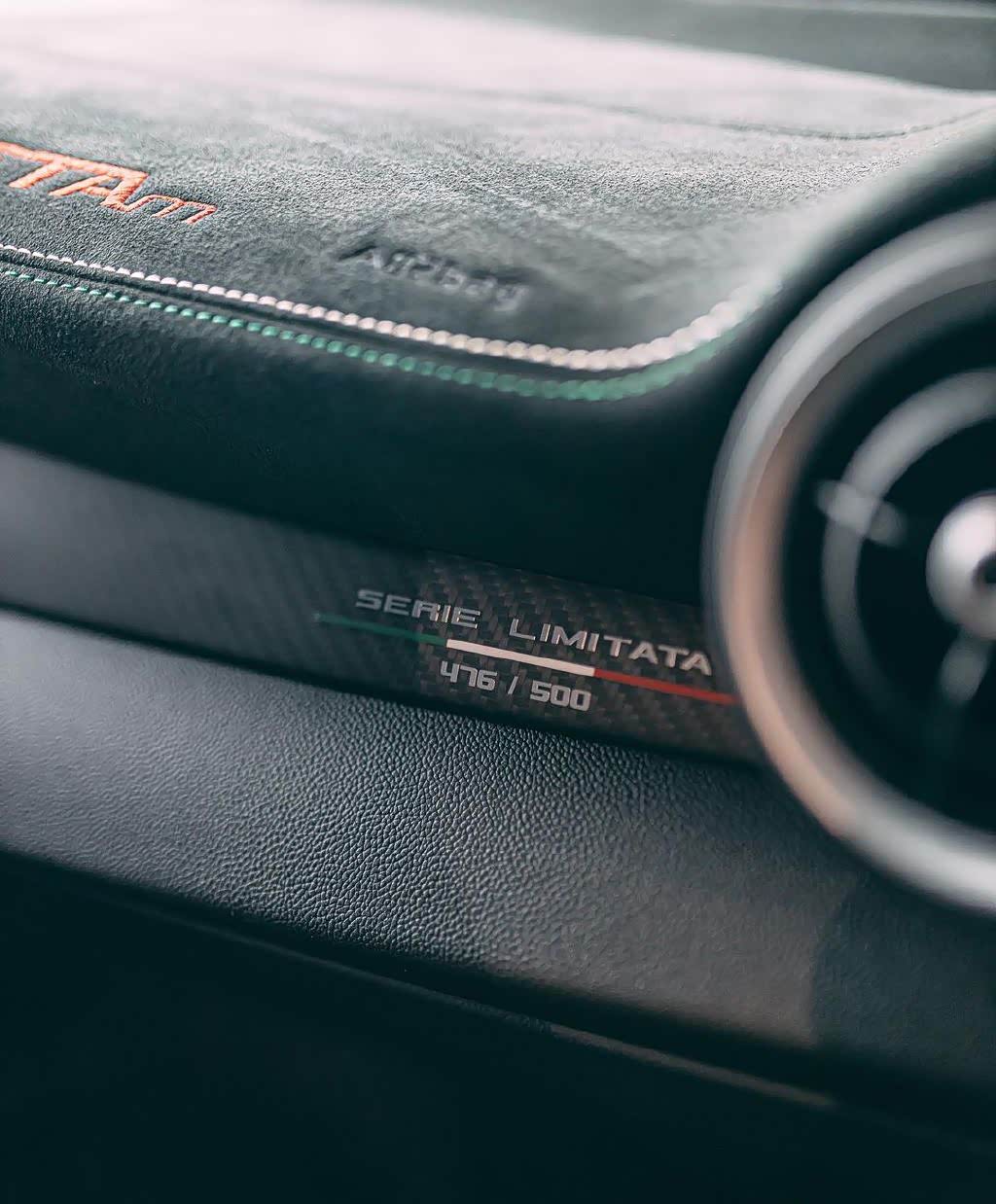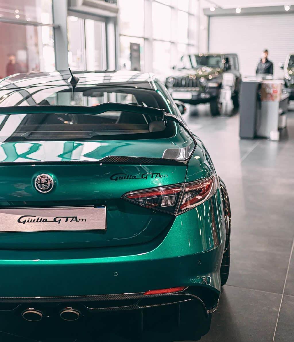 阿尔法·罗密欧Giulia GTAm,可看作为和宝马M Power、奔驰AMG齐名的意大利性能车。基于四叶草打造而来,F1车队负责性能提升。前脸比四叶草激进很多,更具攻击性,尤其是下部的前唇、进气口,给人一种战斗力十足的感觉。尾部硕大的尾翼和中置排气管造型帅气十足。车内采用了轻量化碳纤维桶形座椅,并取消了后排座椅。