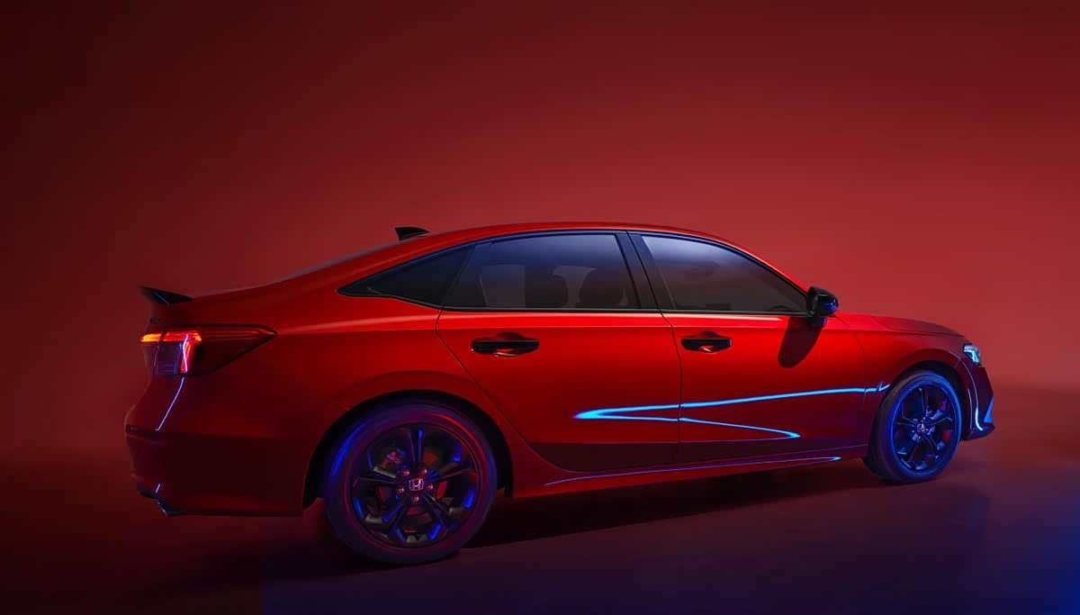 新车侧面回归传统三厢轿车造型,相比第10代车型的溜背设计,第11代思域B柱后的车身与大哥雅阁比较相似,特别是后门和C柱上的小三角窗,与雅阁非常相似。