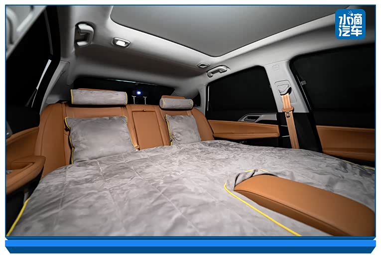 事实上,车主在车内休息是一个较为常见的场景,小鹏P5为此设计了睡眠场景功能,用户可以通过语音方式进入睡眠空间,此时座椅会放倒、电动遮阳帘关闭、助眠音乐响起、智能香氛散发气味,铺设上选装的睡眠套件和抱枕,不论是工作午休还是旅行住宿,都能够在车内完成。