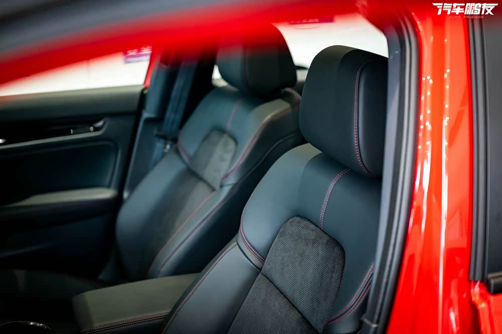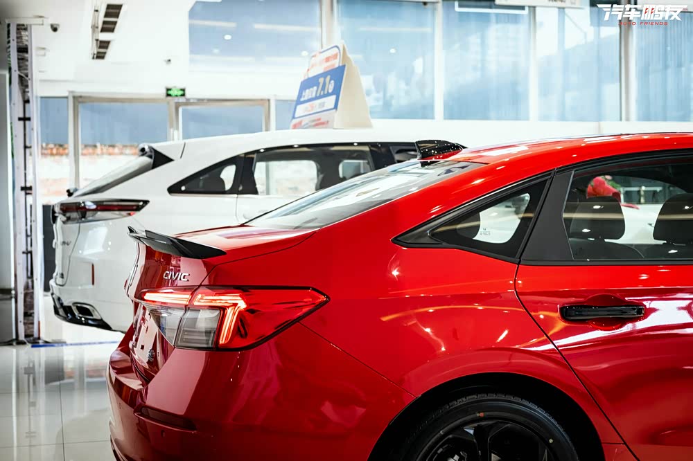 此外,大家也无需担心全新思域会变成速腾、卡罗拉那样,毕竟它体内有着本田的DNA。全新思域同时会提供一版更为运动化的设计,轮圈采用熏黑样式,车尾加入了熏黑的“鸭尾”,而且还有熏黑的双边单出尾排;车内则有大量红色缝线装饰、皮质+麂皮绒的座椅,以及运动金属踏板,进一步营造出全新思域的爽快运动感。从这点来看,全新思域其实也没变,只是让运动变得“暗流涌动”而已。