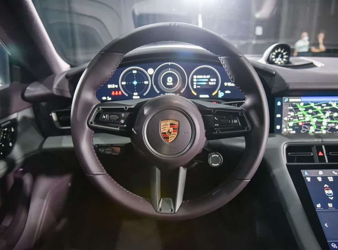 同样是纯电动汽车,但保时捷Taycan在方向盘与仪表台上的设计几乎就照搬了保时捷911。虽然车辆方向盘后方的全液晶仪表盘采用了时髦的柔性曲面屏设计,但也依旧“继承”了保时捷911系列的“通病”,那就是完全遮挡了液晶仪表盘两侧的所有视线。