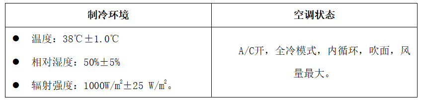●制冷效果:考核动态、怠速工况结束时所有呼吸点的平均温度(℃);