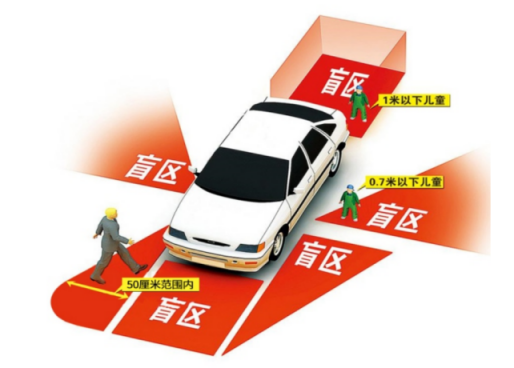 驾驶员坐在车上,因为车身结构的原因,车身周围有一大片看不见,这就是盲区,汽车盲区一方面考验我们的驾驶技术,一方面也会潜藏很多安全风险。为了规避风险,减少事故的发生,一方面驾驶培训时要求驾驶员上车之前绕车一周查看周围情况,一方面车辆本身不断升级配置去最大程度消除盲区。