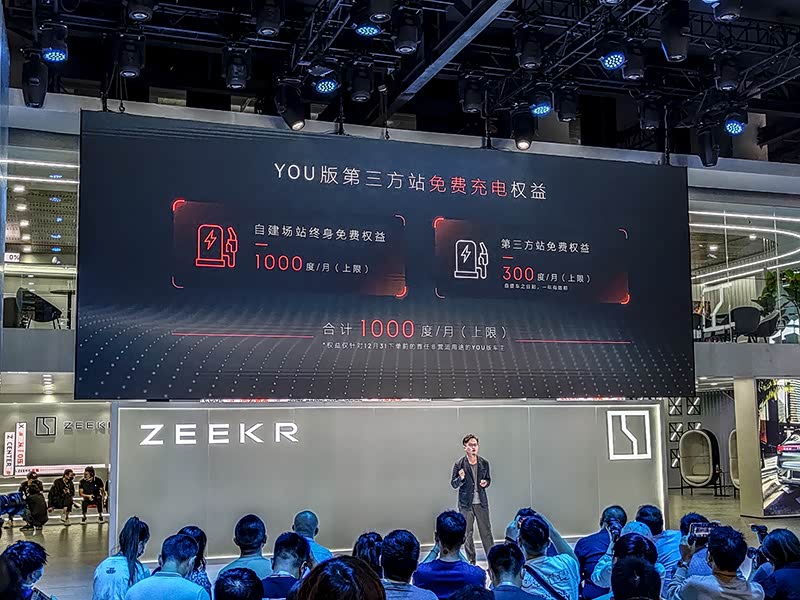 在2021年12月31日前下订『极氪001 YOU版』的用户可享自建充电站终身免费充电权益(上限为1000度/月)、第三方充电站1年充电权益(上限为300度/月),但两项权益合计上限为1000度/月。