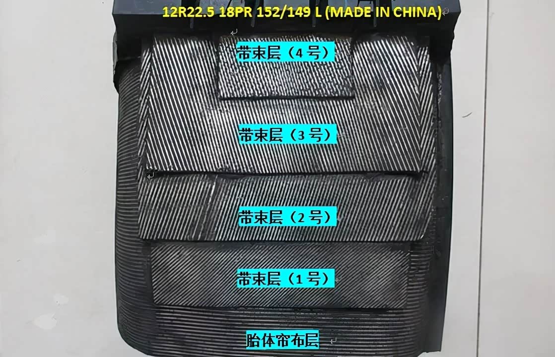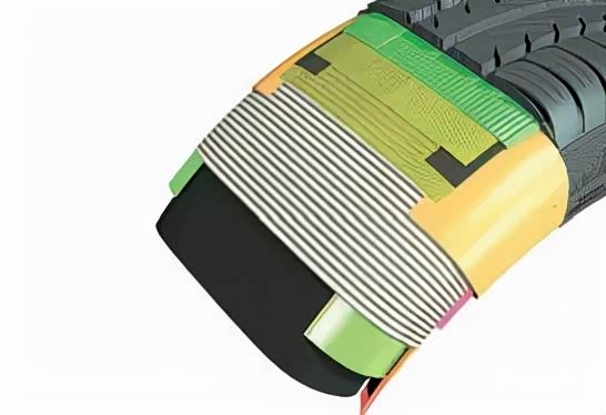 为了把松散的“子午线”紧箍到一起,因此轮胎里还设计有“带束层”结构。“带束层”一般是2层交叉的超高强度纲丝组成的。“带束层”的位置刚好就在胎冠正下方。