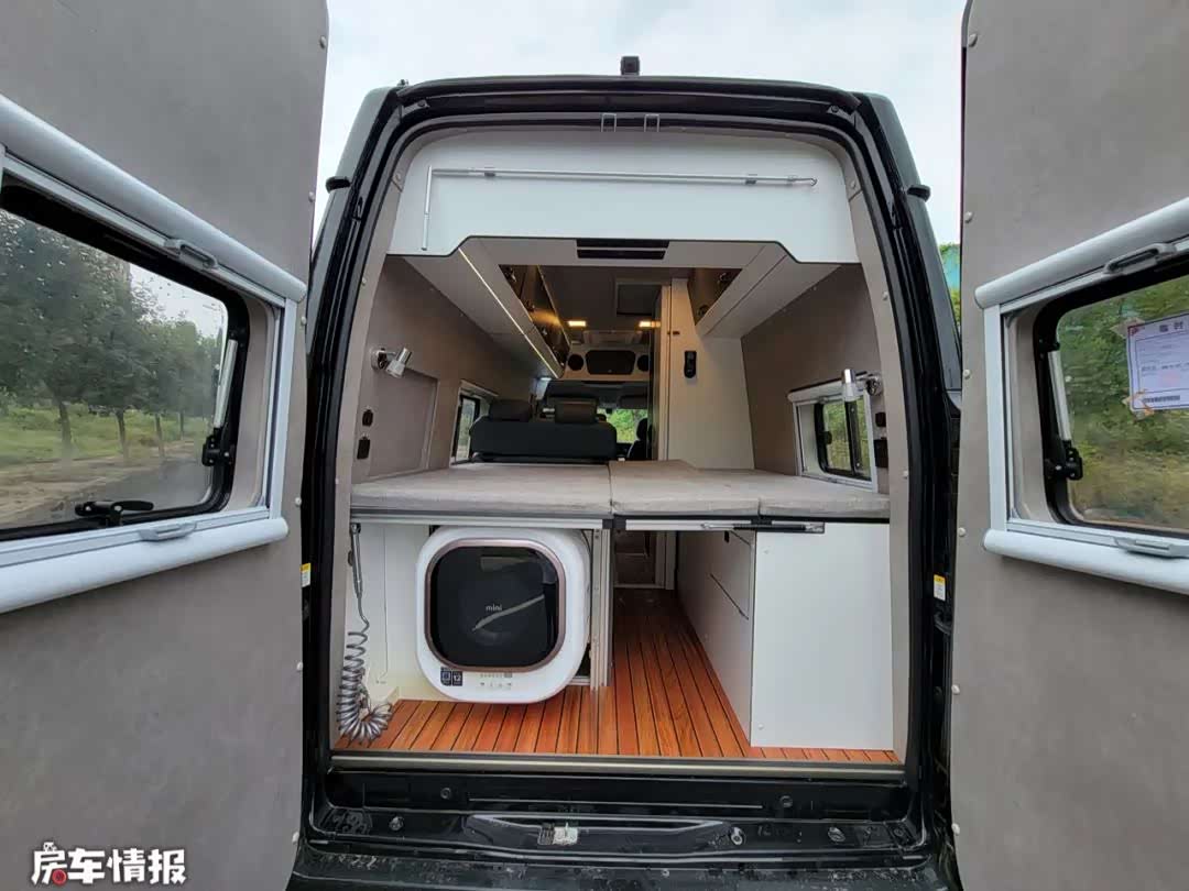 打开可180度平开的后尾门,还可以看到隐藏在床板下方的一台mini洗衣机,满足更多的出行需求。