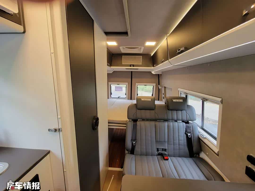 从驾驶室后方的顶部一直到尾部,提供了一整排的储物吊柜,足够满足出行存放物品的需求。
