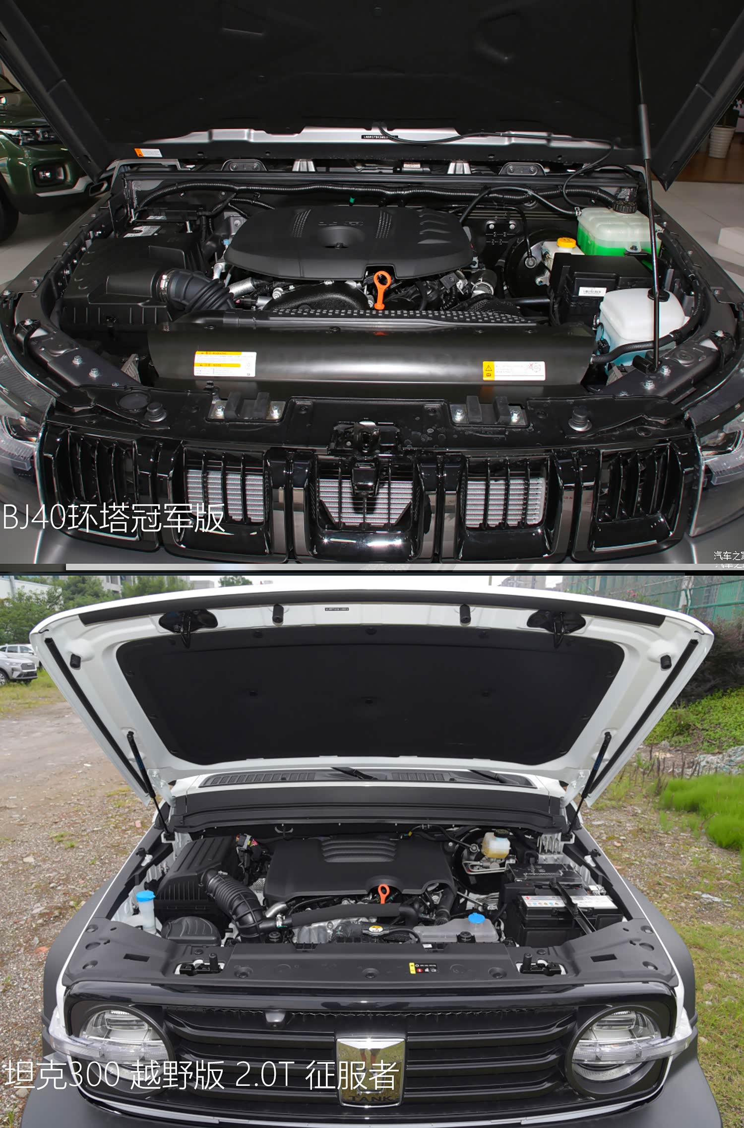 传动系统方面,两款车型都使用8速手自一体变速箱,BJ40为液压助力转向,而坦克300采用电子助力转向。