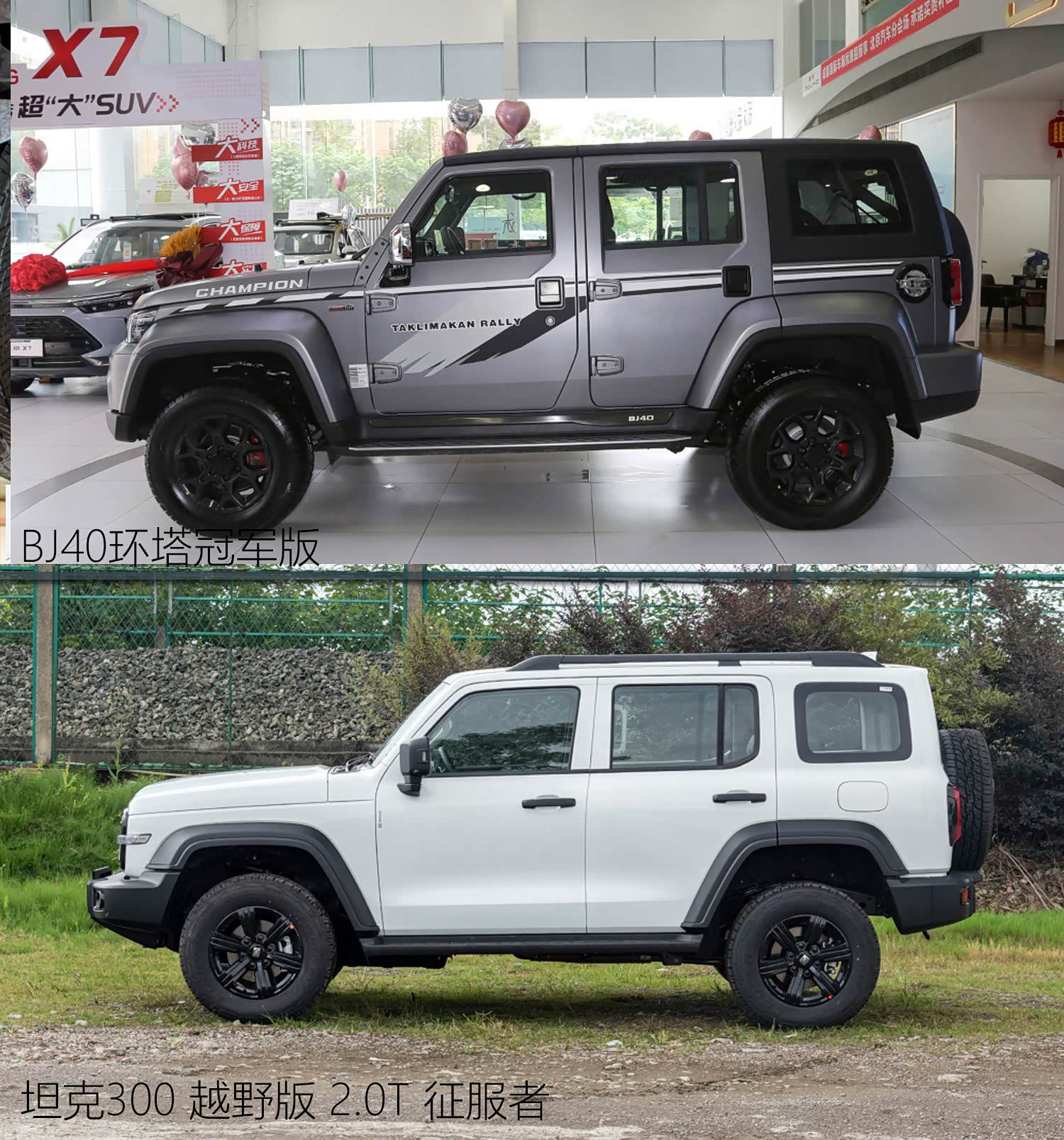 以前提到硬派越野车会立即想到牧马人、G级、普拉多,而现在则是中国品牌的产品,比如今天对比的两款车型:北京越野BJ40 2021款 2.0T 自动四驱环塔冠军版(以下简称:BJ40)和 坦克300 2021款 越野版 2.0T 征服者(以下简称:坦克300)。