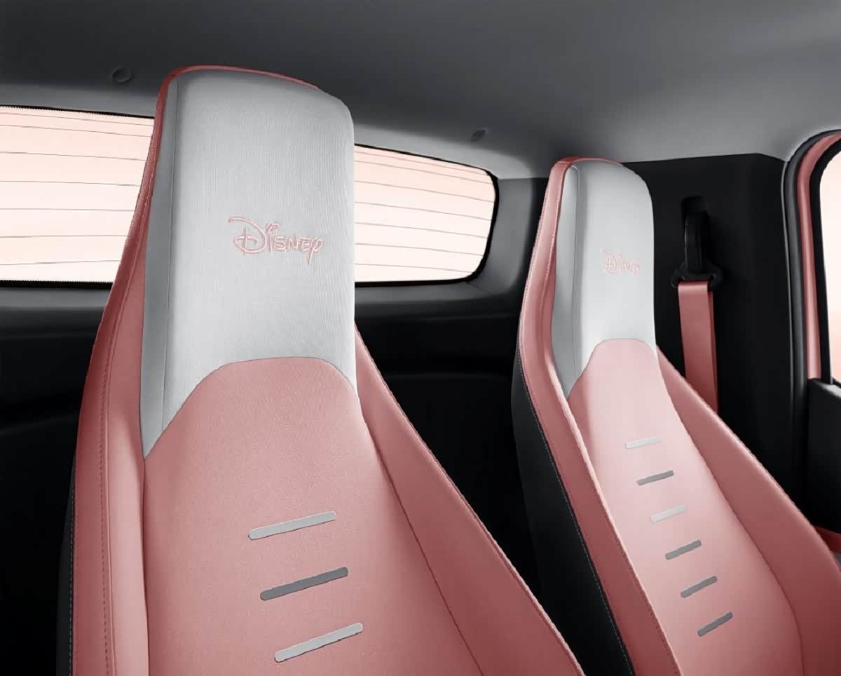 新车整体十分时尚,限定版车型融入更多颇具个性化风格的设计元素。外观方面,新车前脸采用全封闭设计,搭配前保险杠的黑色饰板,十分时尚。车尾分体式的尾灯提升了整车的运动感。新车前翼子板处将会配备“Disney”限定徽标,辨识度十足。尺寸方面,新车长/宽/高分别为2500/1526/1616mm,轴距为1600mm。