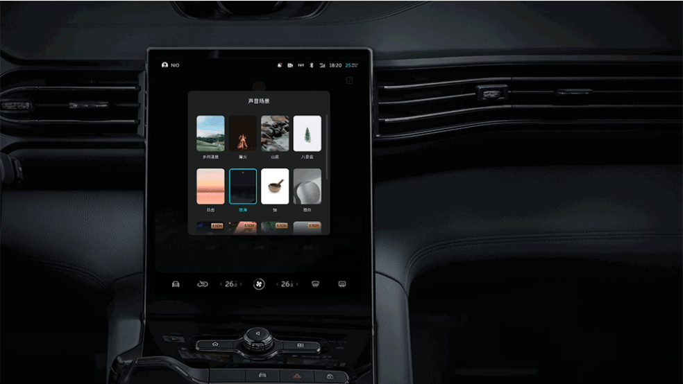 冥想模式,通过自动关窗、关灯等营造出安静的物理环境,营造出一个闹中取静的移动冥想室。对NOMI说开启冥想,并选择一段你喜欢的声音场景,使车内更加适用多种环境。