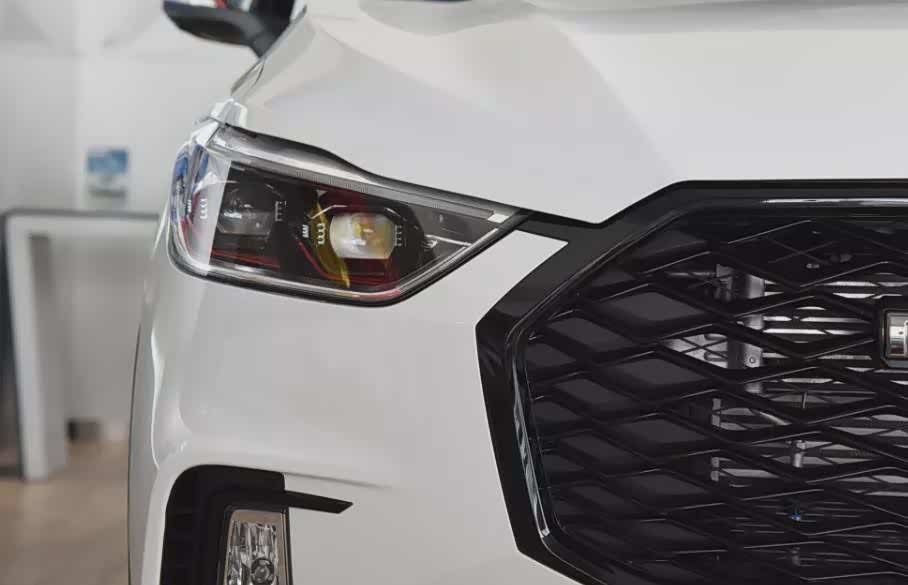 作为年代改款,上汽大通MAXUS D90 Pro在外观方面并没有太大变化,新车的整体设计大气硬朗,其中前脸部分匹配了多边形的大嘴式进气格栅,内部辅以黑色蜂窝状细节作为点缀,搭配底部肌肉感十足的前保险杠,整车具有十分强烈的时尚韵味。新车前脸左右两侧的前大灯组呈上扬趋势,内部灯光配置足够丰富,具备LED远近光灯,LED日行车灯,自动头灯,卤素车前雾灯,大灯高度可调等。