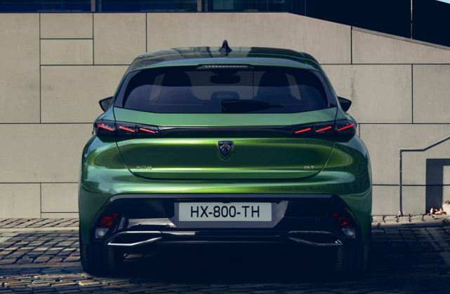 车尾则是经典狮爪尾灯,车标换上了新的盾牌型狮子头,也是2021年标致汽车全面换标的体现,目前展示的混动高性能版本GT车型的尾部双排气出口十分夸张,在加上宽体轮胎,总体运动视觉效果满分。