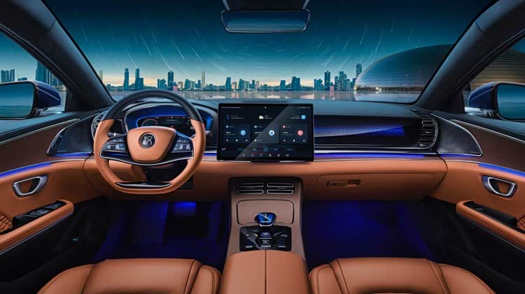 跟外观一样,新车内饰也增加了金鳞橙配色可选,搭配凝夜紫碳纤维面板、多色内饰氛围灯、菱形皮革缝线等元素,进一步凸显出深邃的高级豪华座舱氛围。其中,超长续航版尊贵型的选装价格为4000元,四驱高性能版旗舰型(配备“5G丹拿智能音乐座舱”升级包)选装该配色同样免费。