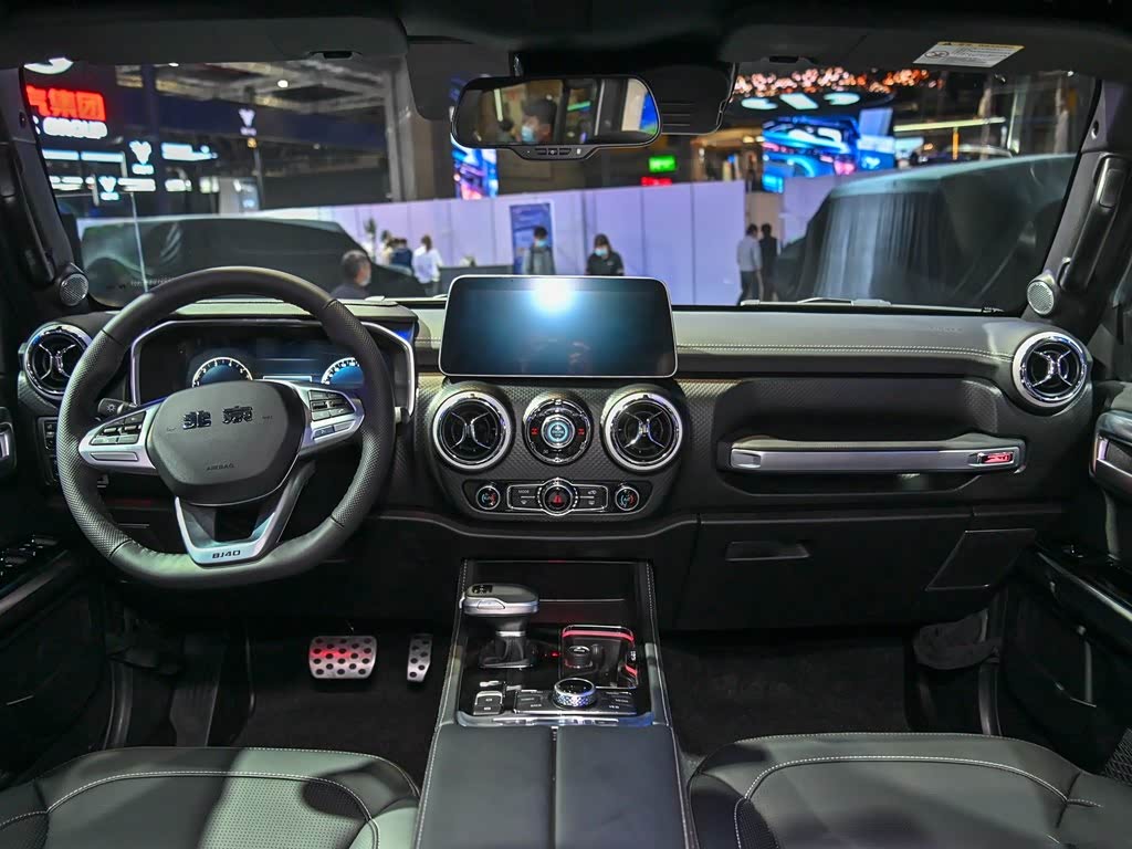 北京BJ40虽然是一台硬派越野车,但是在车内完全没有感受到粗糙,大量的真皮包裹以及软性搪塑材料看起来豪华感十足,全液晶仪表的显示效果很不错,可以根据不同的驾驶模式进行切换。悬浮式中控大屏外边框为梯形设计,相比矩形来说更具时尚感。除此之外,因为环塔冠军版车型为限量版,所以车内很多位置都有限量版标志,乘客坐到车内会非常醒目,提升车型的辨识度。但是这些对于真正的越野爱好者来说只是锦上添花的配置,坐在车里感受近乎垂直的前风挡才是最重要的,与公交车平行的视角是城市SUV车型无法体会到的。