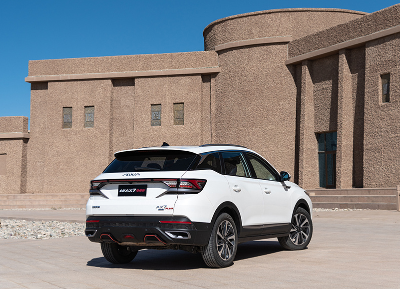 车尾部分,风神AX7马赫版与风神AX7 PRO也没有太大的区别,只有后保险杠位置的扩散器增加了红色饰条与前脸相呼应。新车依旧采用贯穿式尾灯设计,两端分别呈现出Y字造型,点亮后具有很强的辨识度。