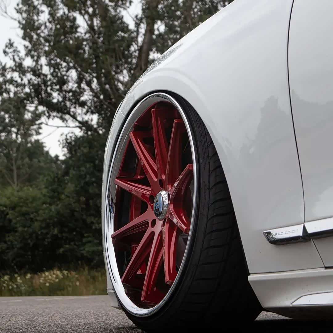 这台从前脸可以看出应该是类似于S90的豪华版,更有商务气息,稳重优雅的气质更多一些,所以车主的改装更偏向于走姿态路线,轮毂外倾,通过气动避震营造出低趴的车身姿态,小抛边多幅轮毂颜色比较出挑,白色车身毕竟百搭,轮毂颜色算是一个出彩的地方。