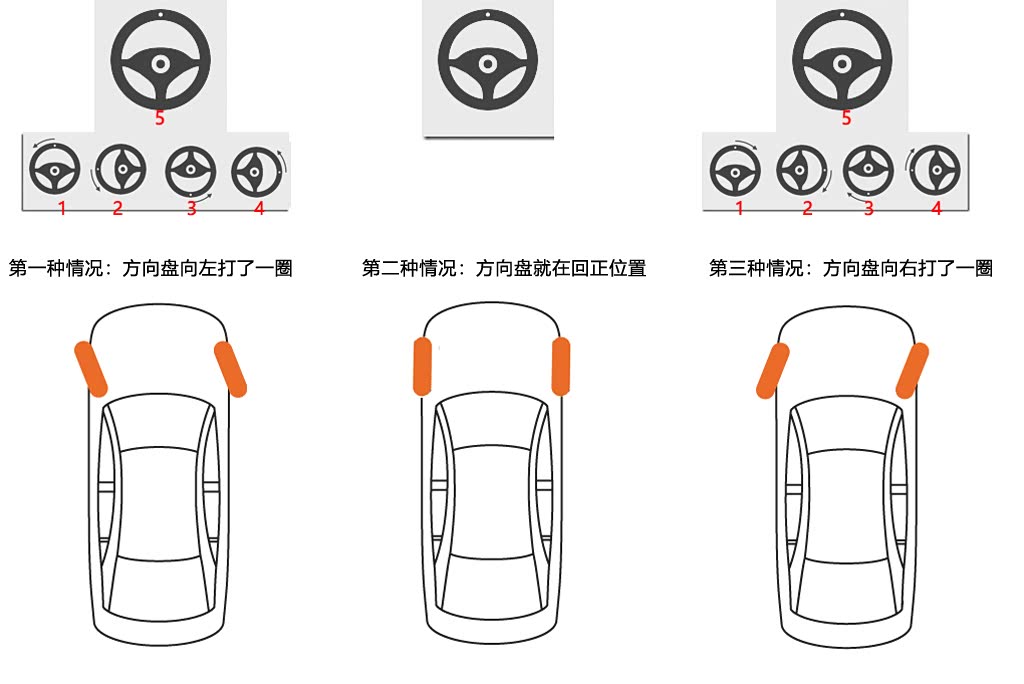 车静止在原地时谁也不能只坐在车里就判断出来方向打了多少。但是只要车一动起来,我们就可以根据车辆行驶的轨迹判断出来打了多少方向。