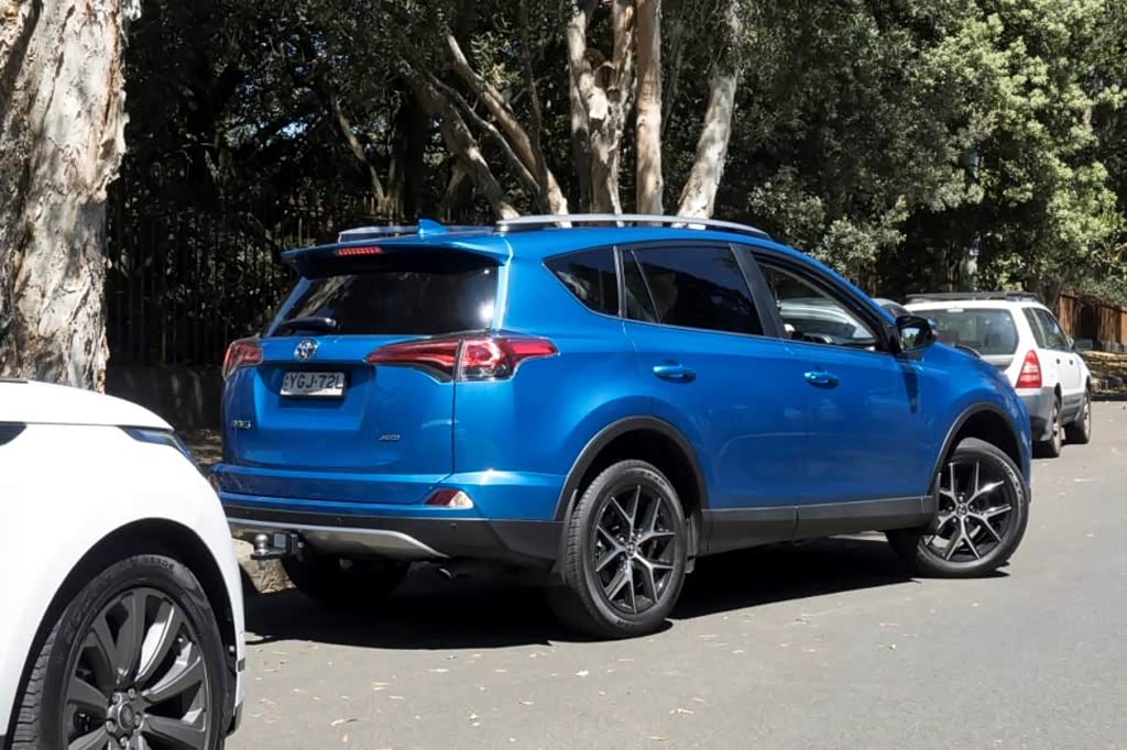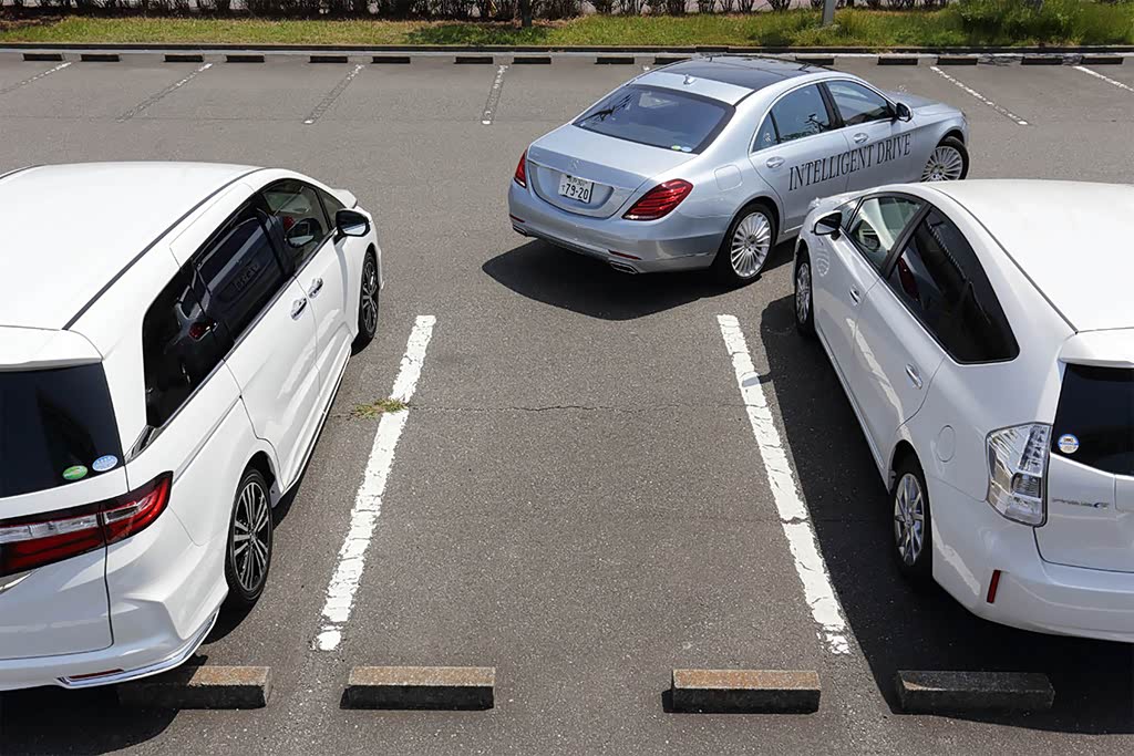 上图这辆车正在侧方停车,在倒车入位后基本上都需要往前提一点,而往前提的时候你就可以根据车辆行驶轨迹来判断方向盘是否回正了。