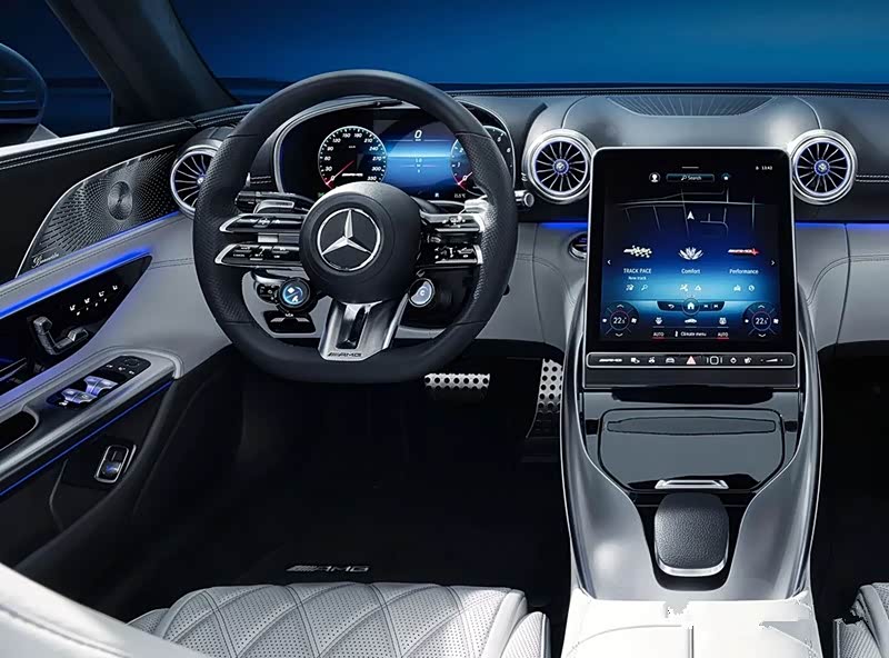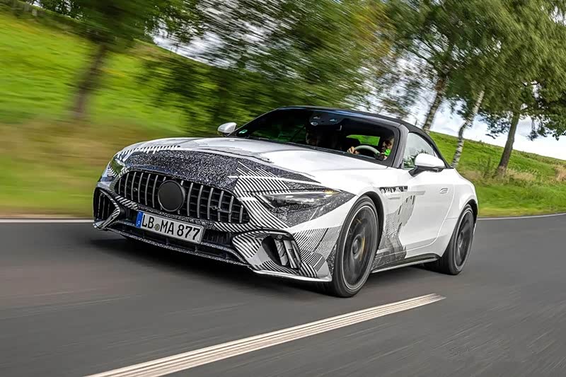 梅赛德斯-AMG 在未来几周将正式发表新一代 SL 豪华敞篷跑车 (内部编号 R232) ,厂方近日提前公布了轻度伪装原型车外观及无伪装内饰的照片。由 AMG 全权主导开发的新一代 SL ,采用与下一代 AMG GT 车系共享的全新 MSA 平台架构,这款模块化跑车平台能轻松应付各种不同尺寸的车身。