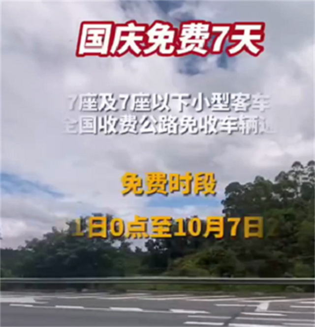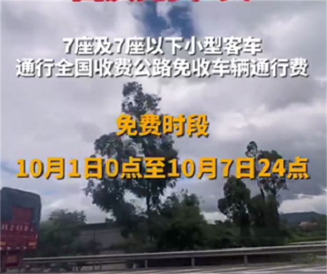 据了解,这一次国庆高速是不收费的,7座以及7座以下的小型客车通行全国收费公路,直接免收车辆通行费,而免费的时段便是从10月1日0点到10月7日24点,如果超过了这个时间段,那就要收费了。