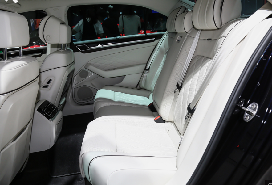 走进车内,内饰的设计上这款车就没有给到我们豪华感,因为它还是保留了之前大众很纯粹的设计,镶嵌式的显示屏尺寸虽然可以,但是缺乏新意,整体的“T”字造型已经熟悉的不能再熟悉,虽然有石英砂钟表以及木纹饰板的点缀,在豪华感上呈现出不错的优势,但是设计方面还是大打折扣的,毕竟上了这样一个价位,就不能用和普通大众车型一套相同的内饰,不然就会显得很掉价。最后就是配置方面,配置上这款车很强,它有后排冰箱、360全景影像、ACC自适应巡航、HUD抬头显示、真皮座椅、座椅通风按摩、后排小桌板、16个丹拿音响、全车多层隔音玻璃、后排遮阳帘等等,有了这些高端配置,确实奠定了这款车行政、商务的基础。