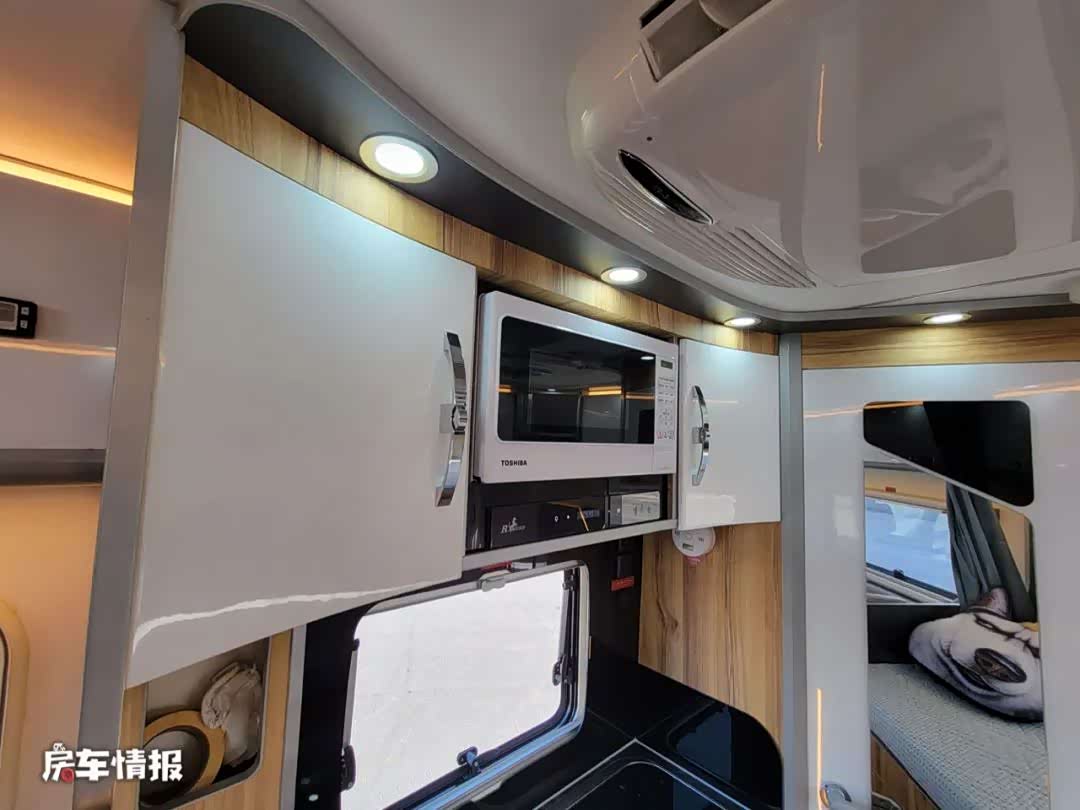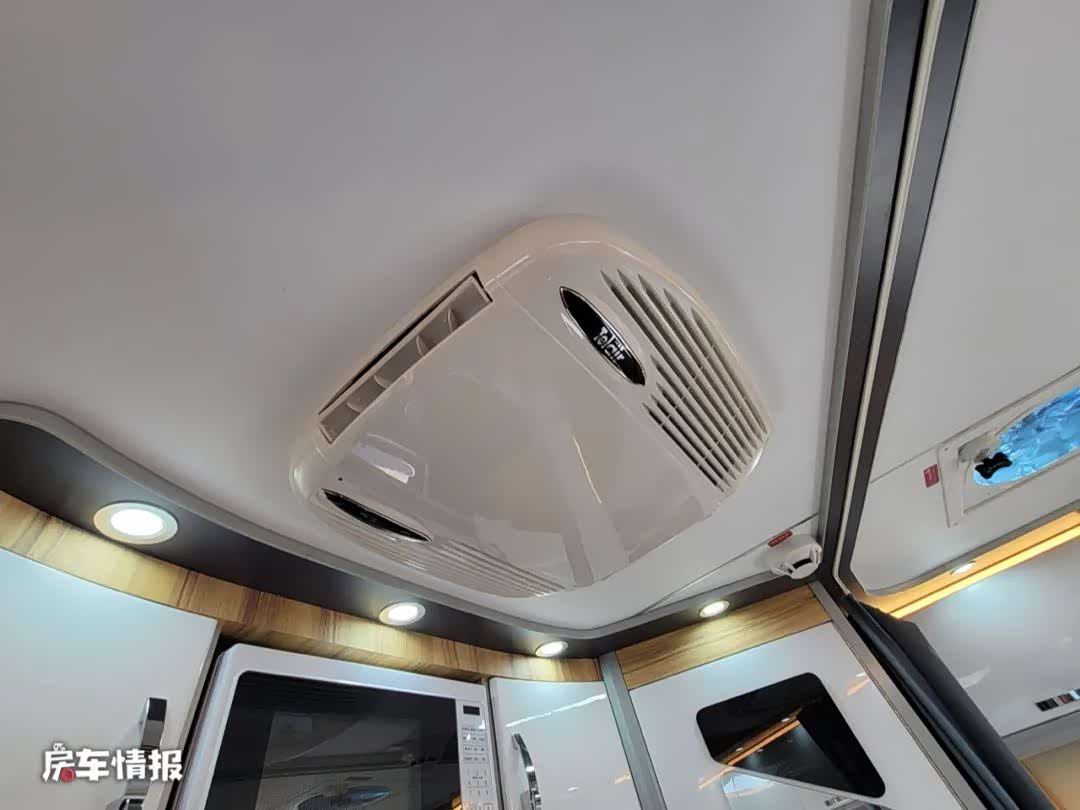 另外,在休息区顶部还配备了一台来自意大利特雷尔(Telair)空调,扁平式的设计可以节省车内的生活使用空间,同时也能够保证全车的道路通过率。