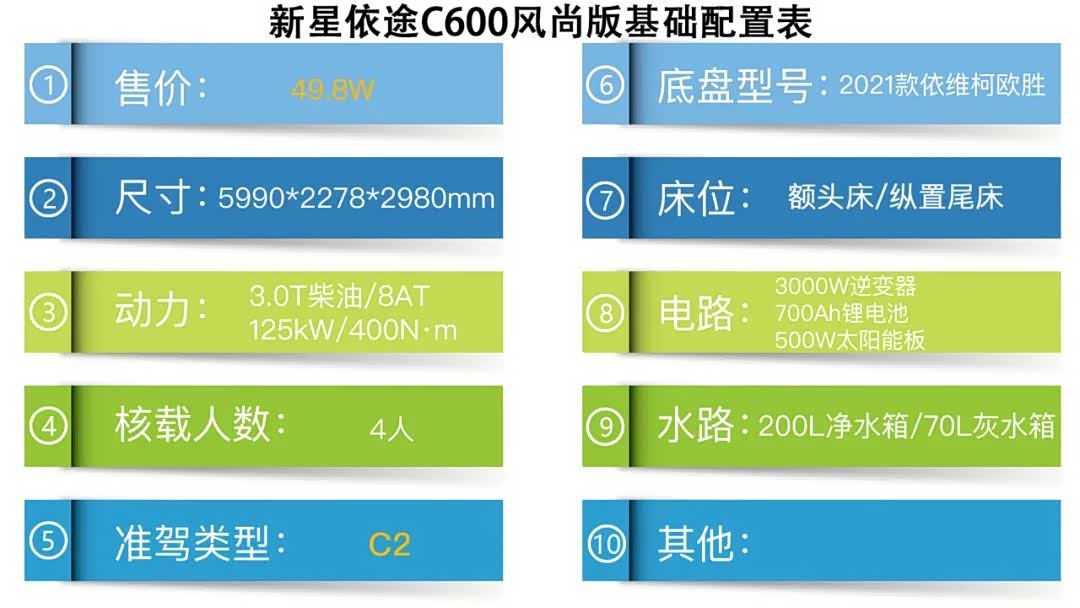 这款基于2021最新款依维柯欧胜底盘所打造的新星依途C600风尚版房车,简约大气的外观,同时还拥有丰富的生活配置,现在的报价为49.8万元,不知道看完整体的介绍之后您觉得如何呢?欢迎在下方的评论区和我们分享您的观点看法,下期再见~