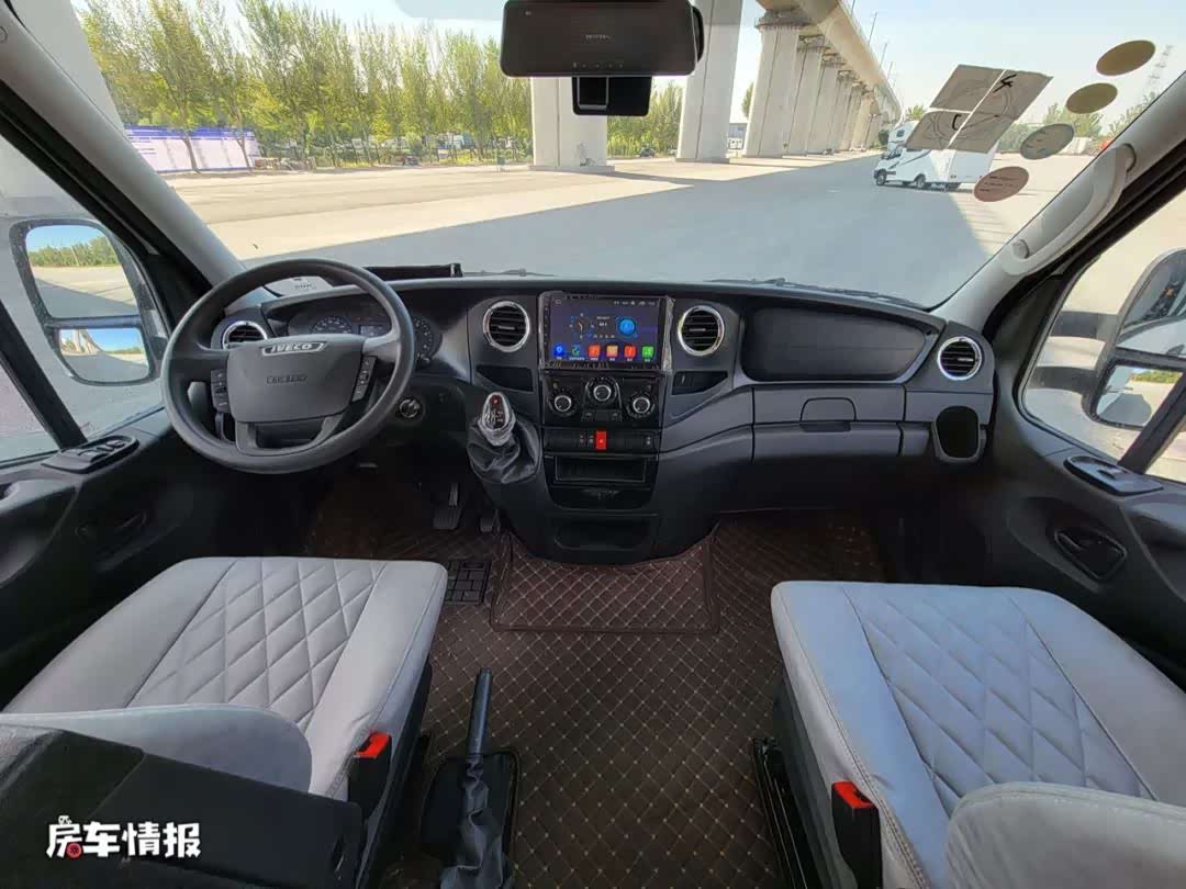 因为采用了最新依维柯欧胜的底盘,所以整车的驾驶室内也加入了全新的设计元素,比如镀铬的出风口装饰,也为整车提升了精致感。另外还提供了多功能方向盘、中控彩色显示屏等方便驾驶员后期更便捷的观察和操控。