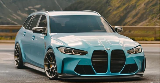 近日,有媒体获悉了一组 宝马M3瓦罐车型的渲染图,据外媒爆料,这款全新车型并不会进入美国市场,小编估计进入国内的可能性也很小,G81将于2022年11月开始生产,且只有一个型号:Competition xDrive,它将采用和中期改款G80 M3相近的设计和配置。从渲染图中获悉,新车一抹时尚的淡蓝色涂装,前脸大尺寸双肾式进气格栅造型,内部横幅式的熏黑线条,两侧的灯光狭长凌厉,下包围的线条十分犀利,视觉效果上极具立体感。侧面舒展的车身造型,低趴的车身,熏黑的侧裙,多幅式得熏黑轮毂,内饰黄色刹车卡钳,都是其运动属性的表现。尾部凸出的翼子板,鲨鱼鳍的装饰,熏黑的尾灯,双排四出的排气,彰显其高性能车型的风范。