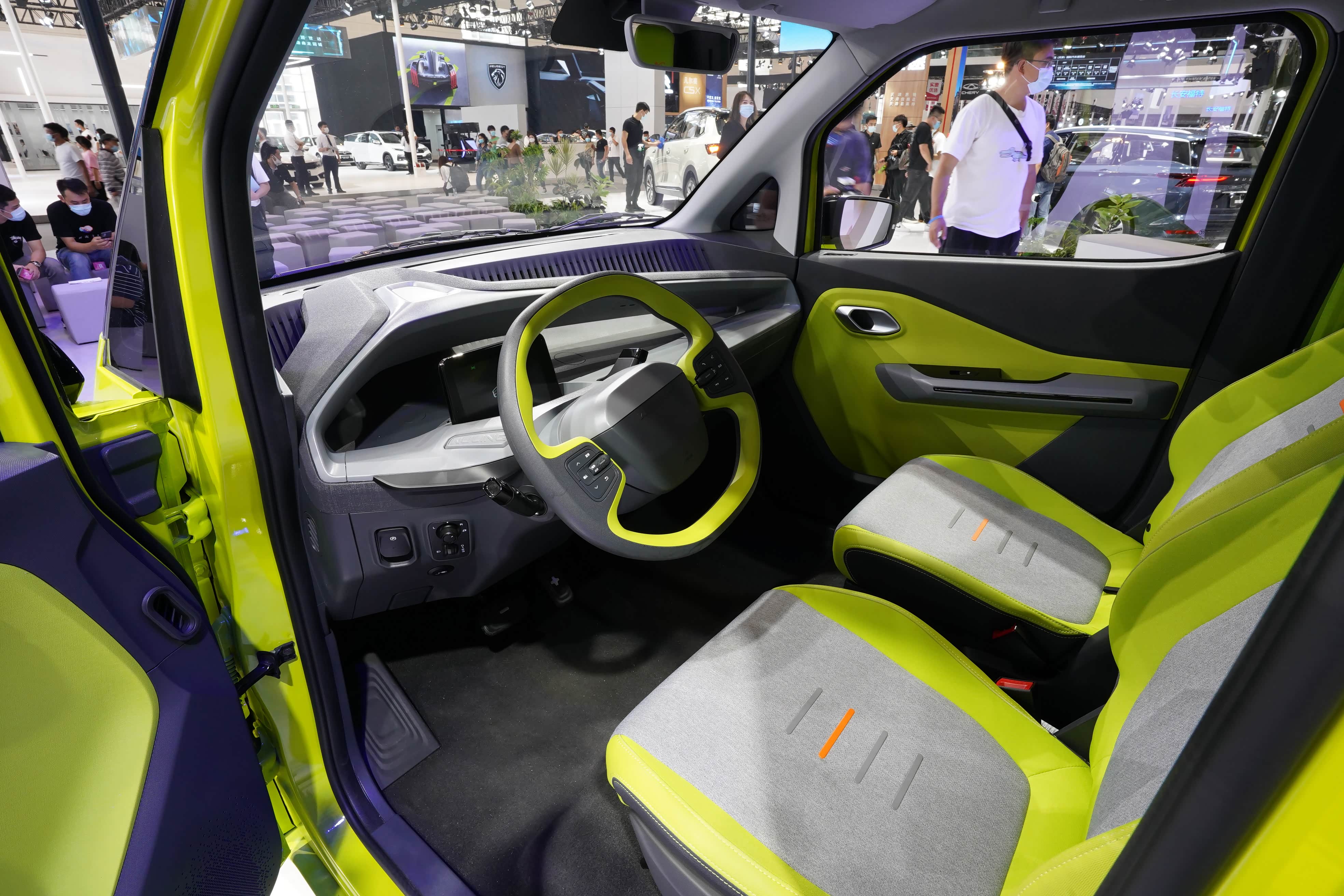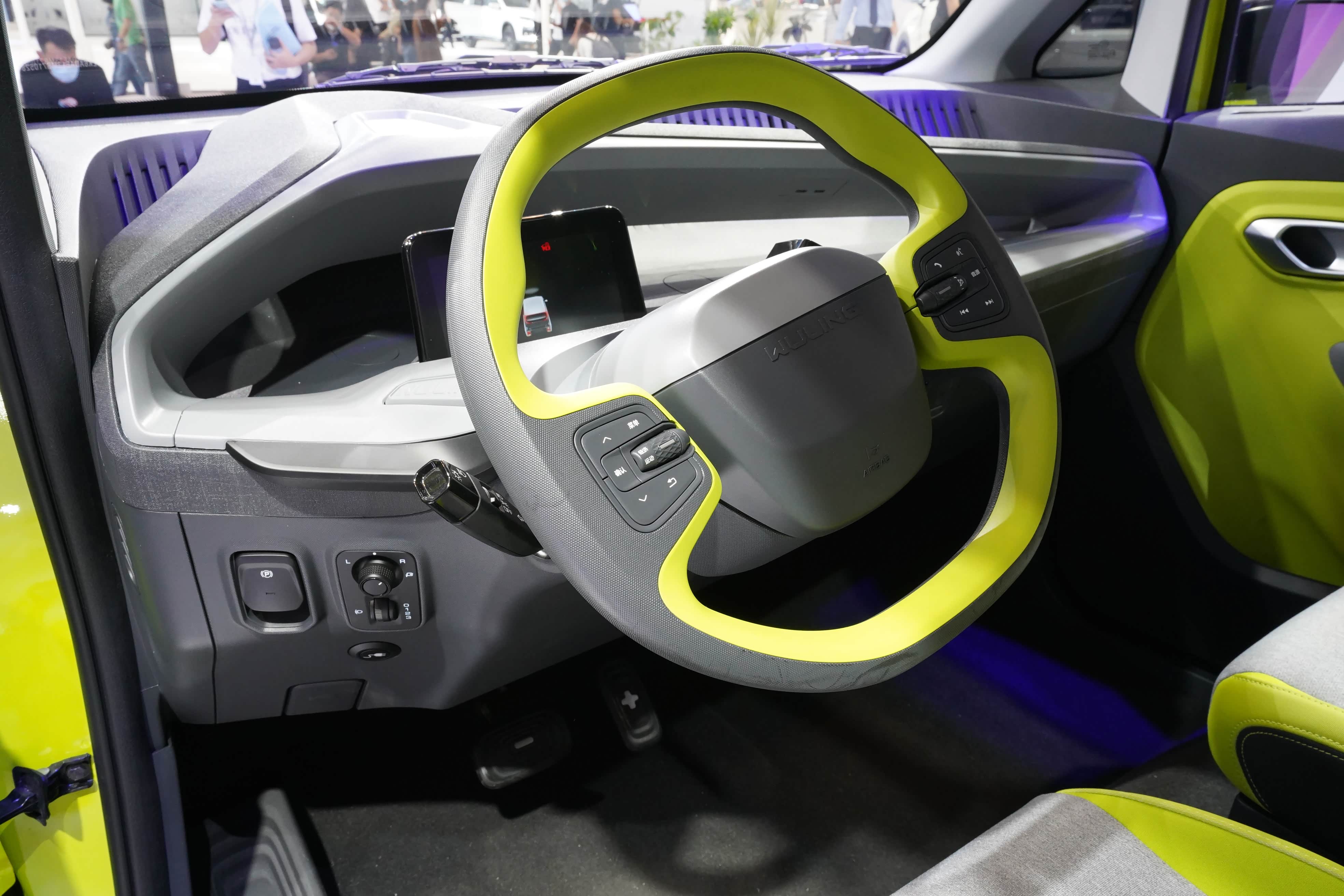 这辆车是一辆双门两座车型,很明显没有宏光MINIEV四座来得实在了,但是不可否认车内依旧是充斥着让你很难拒绝的个性化设计。两车的内饰主题与其对应的动漫人物相对应,所以Judy限定款内饰灰绿颜色更显活力,Nick限定款白粉颜色则更显可爱。车内的中控部分非常简单,中控台呈悬浮开放式,角度向前倾,并且中间有较大一片区域采用镂空设计,提供了更加开放的储物空间。两辐式方向盘以及对应的仪表盘与之前相似车型没有变化,包括仪表盘的位置以及IU界面。