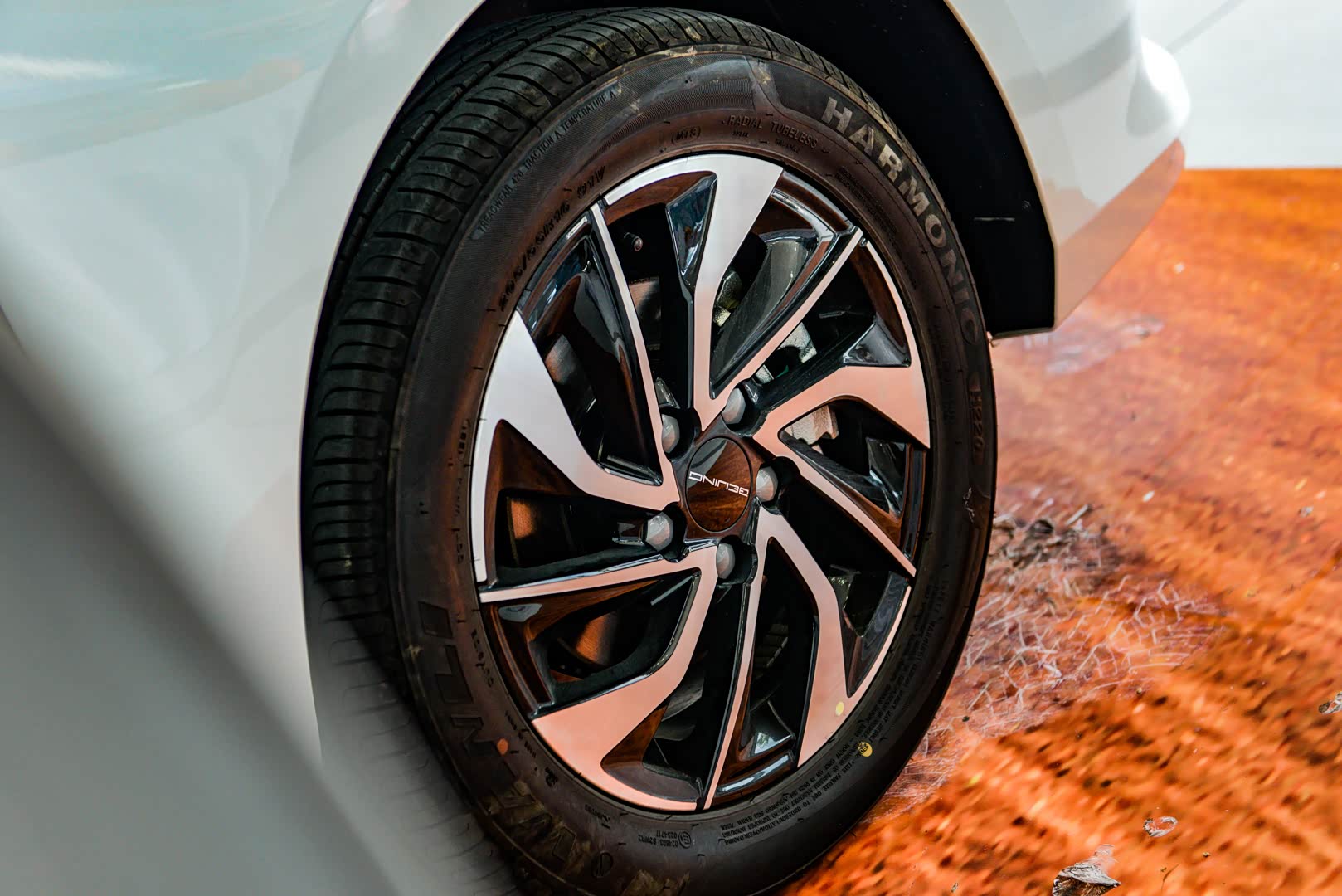 轮圈采用旋风式的双色设计,运动效果不错;配备万力HARMONIC H220轮胎,尺寸是205/55 R16,主打静音舒适,兼顾一部分运动操控。
