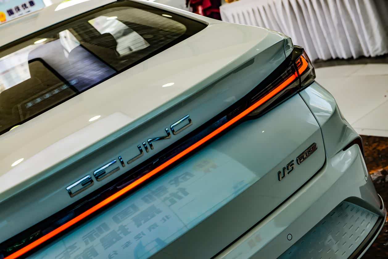 侧面主打厚实、质朴的稳定感,一条平直的腰线连通前后灯组,下方上扬的线条营造动态的感觉,属于比较中正的设计风格,车窗部分采用熏黑配色,与漆面形成色彩反差。 北京U5 PLUS长宽高分别为4660/1820/1480mm,轴距2670mm,其尺寸紧凑型车领域里可以说是中规中矩。