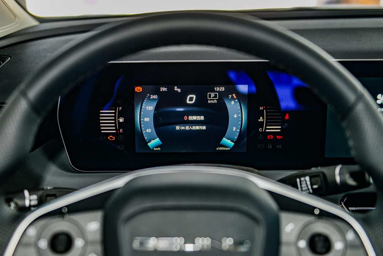 全系标配的7英寸中控屏+12.3英寸高清仪表盘的双联屏设计,使得整个内饰的视觉效果简约而极具科技感,此外屏幕分辨率达到了2k电视的清晰度。7英寸的仪表屏,有些主流竞品只有3.5英寸;12.3英寸的中控屏,竞品中这个价位只能是10.25英寸。