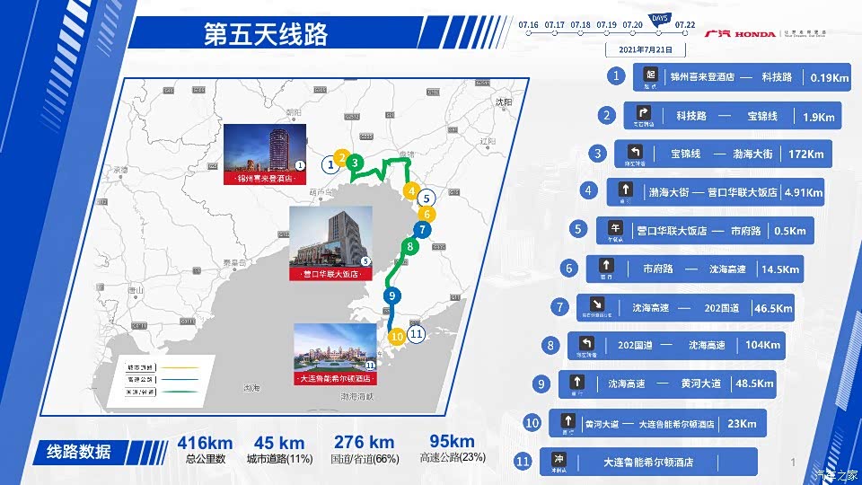 Days 5(7月21日)路程:416km(城市道路45km+高速公路95km+国道276km)