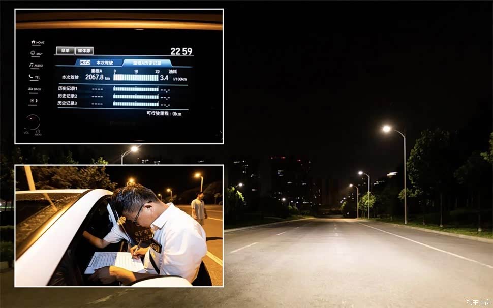 突破2000km时已经晚上9点多了,我们又按照永动机的方法继续开,你别说晚上开真的舒服多了,车里基本不太热,非常有利于冲刺,就这样,我们又行驶了一个多小时,在晚上10点59分结束战斗,里程定格在2067.8km。(在续航和油表都是0的情况下,行驶了280.7km)经过监督员和公证员的确认后,结束了这次挑战赛。