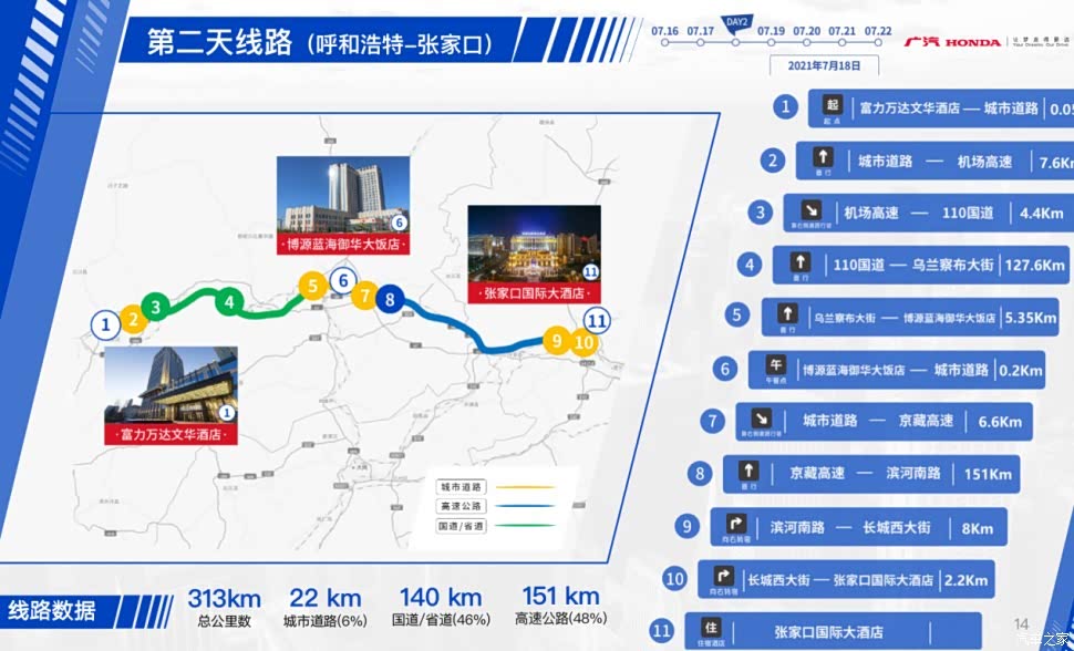 Days 2(7月18日)路程:313km(城市道路22km+高速公路151km+国道140km)