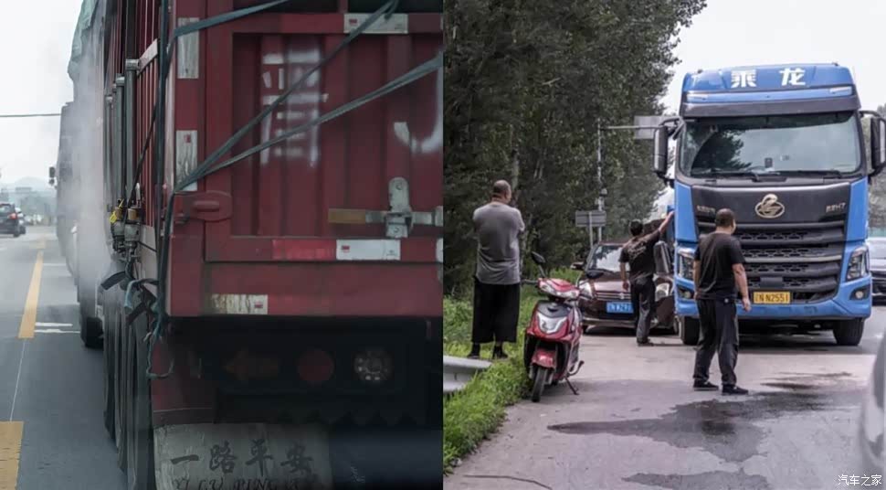 国道上不时还有检查,停在我们前面大货车,由于刹车过热一直在冒烟,提醒货车司机坡道驾驶一定提前减速注意安全,同时也提醒各位网友,大货车满载时刹车衰减很厉害,一定远离大货车。在刚进辽宁界的时候,就遇到了堵车,经过时一看,原来是一辆大货把一辆雨燕的保险杠给刮掉了,提醒大家一定要按照车道线行驶,各行其道,并牢记让速不让道。