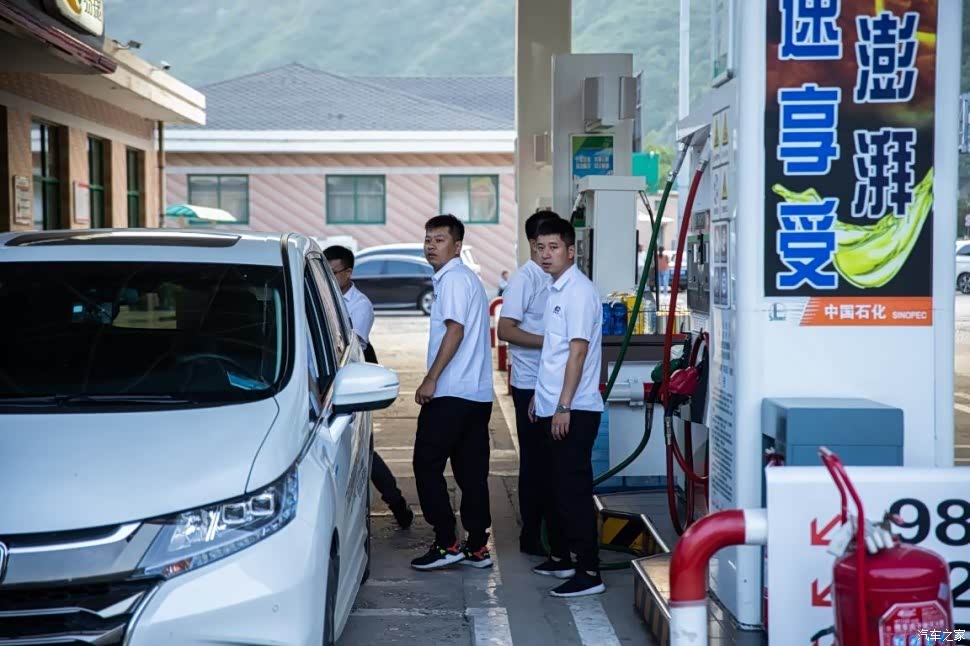 终于到了加油环节了!由于这次比赛规则是60L油的最远行驶距离,而奥德赛锐·混动的油箱是50L,所以需要中途再加10L汽油,并不是加满哟!
