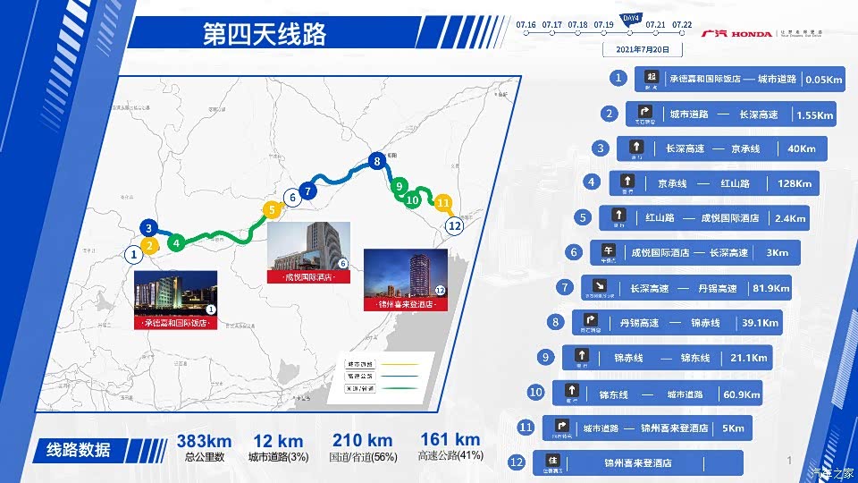 Days 4(7月20日)路程:383km(城市道路12km+高速公路161km+国道210km)
