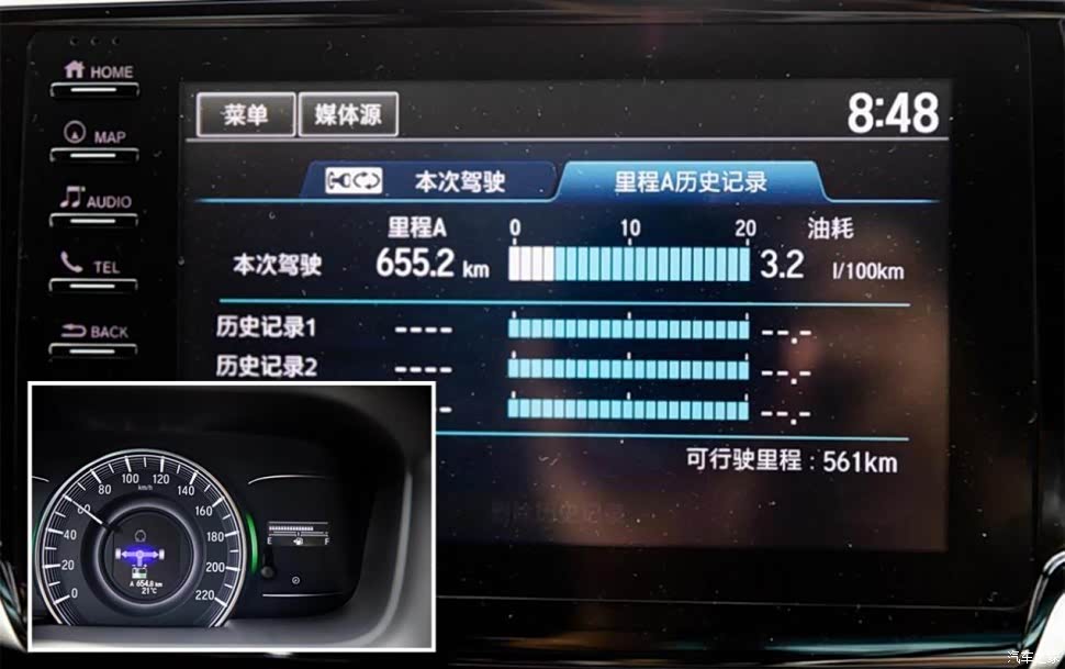 毕竟奥德赛的车也沉,频繁的起步改变节奏会让油耗升高。这不,我的油表在行驶了654.8公里时,又掉了一格油,四分之一的油用完了,平均油耗也从昨天的3.0L上升到3.2L了。