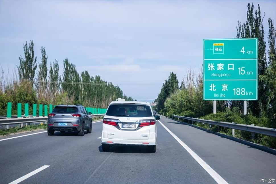 离开呼和浩特也有一段路程了,前方就到河北界了,看来离张家口又近一步。就在我们还在想今晚到了张家口吃什么的时候,我们被之前超过去的其中一台奥德赛锐·混动反超了。当时我灵机一动,奥德赛不是MPV风阻系数大吗,咱们跟着它走,不就风阻小了吗!