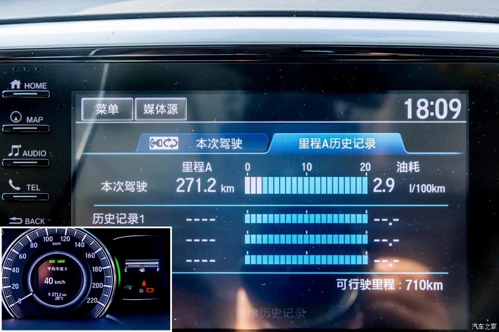 在加满油贴好封条后,第一天行程开始了。出发前,有些小细节还是需要注意的,上车后先开启ECON按键,用经济模式开车;然后关闭防碰撞预警和车道偏离抑制,关闭这些驾驶辅助设备尽量不对动力输出有干扰,我感觉能够有利于续航里程的增加;剩下的就是注意一定不要大脚油门和刹车。