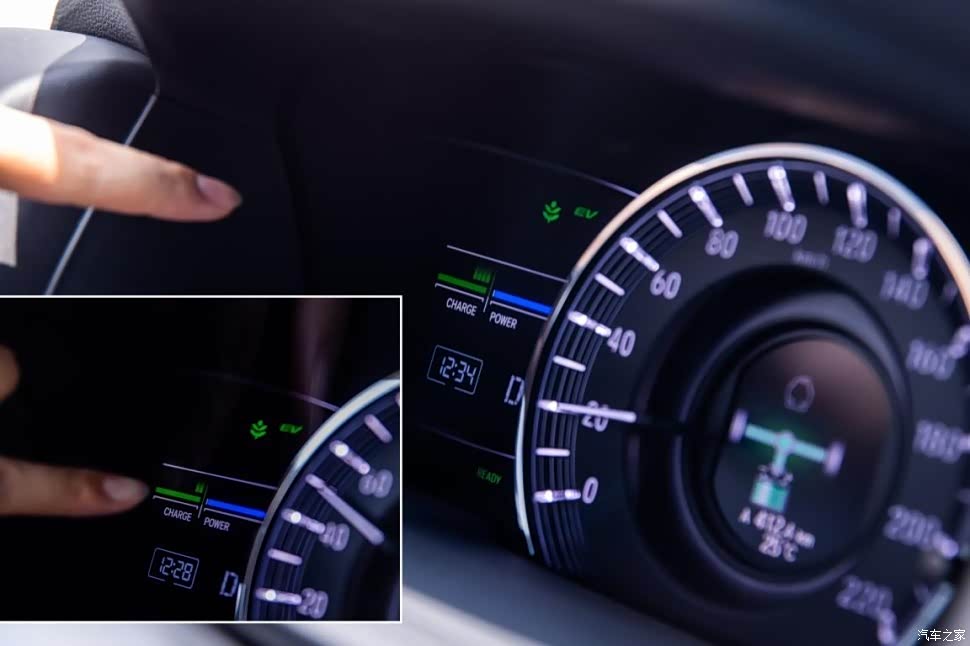 内蒙古境内的国道起伏上下坡比较多,我采取的驾驶风格是下坡时利用陡坡进行动能回收给电池充电,并且尽量在上坡前多充点电,以便在上坡时启用EV模式,只要仪表盘显示的电池电量达到三格及以上,就可以手动开启EV模式。此刻通过缓踩油门踏板,利用电量来减少油耗。