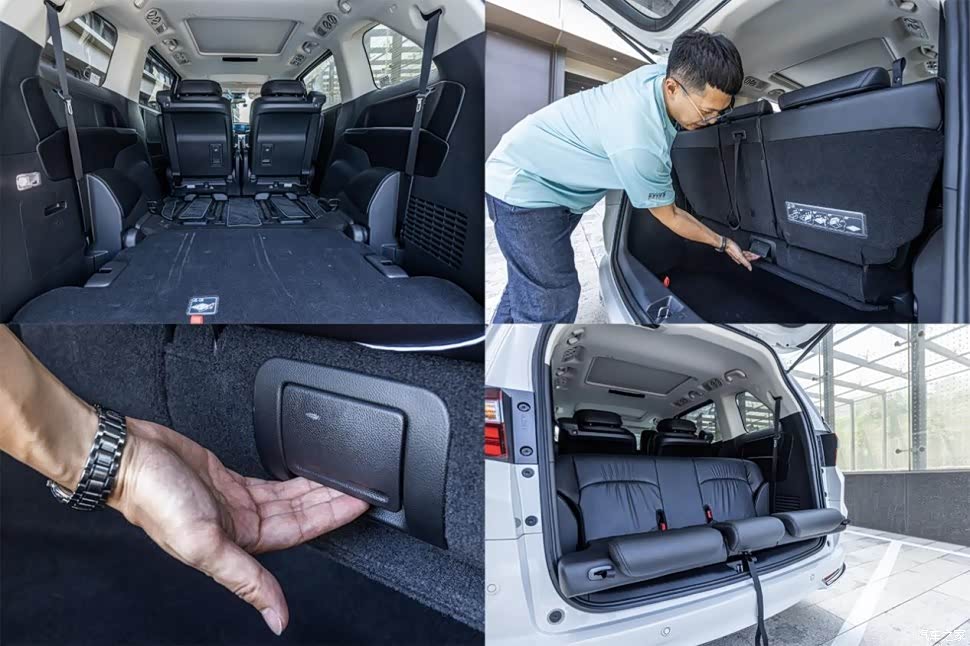 奥德赛锐·混动采用2+2+3的座椅布局,第三排座椅不仅可以收纳到后排地板下方,腾出超大的储物空间。立起第三排座椅后,座椅靠背下面还有一个拉手,一拉、一放、向后翻折,将车尾对着海边进行垂钓,这就是成功男人打发时间最惬意的生活方式。