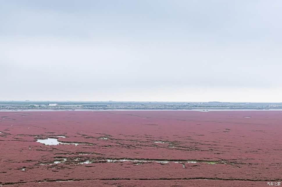 刚过228国道的凌海大桥,还没到盘锦,就发现了盘锦的特产——红海滩,织就红海滩的是一棵棵纤柔的碱蓬草,它每年4月长出地面,初为嫩红,渐次转深,由红变紫,在盐碱卤渍里,年复一年地生生死死,酿造出一片片火红的生命色泽。