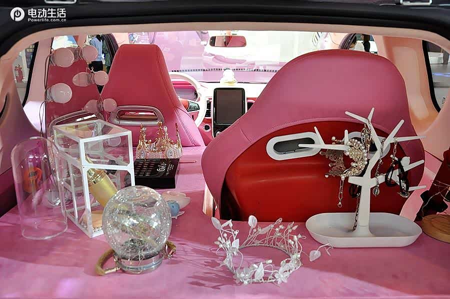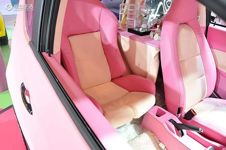 在天津车展上的奇瑞新能源展台我们见到了两款风格十分独特的小蚂蚁,其中一款通体粉红,还去掉了副驾驶座椅,另一款则十分科幻。