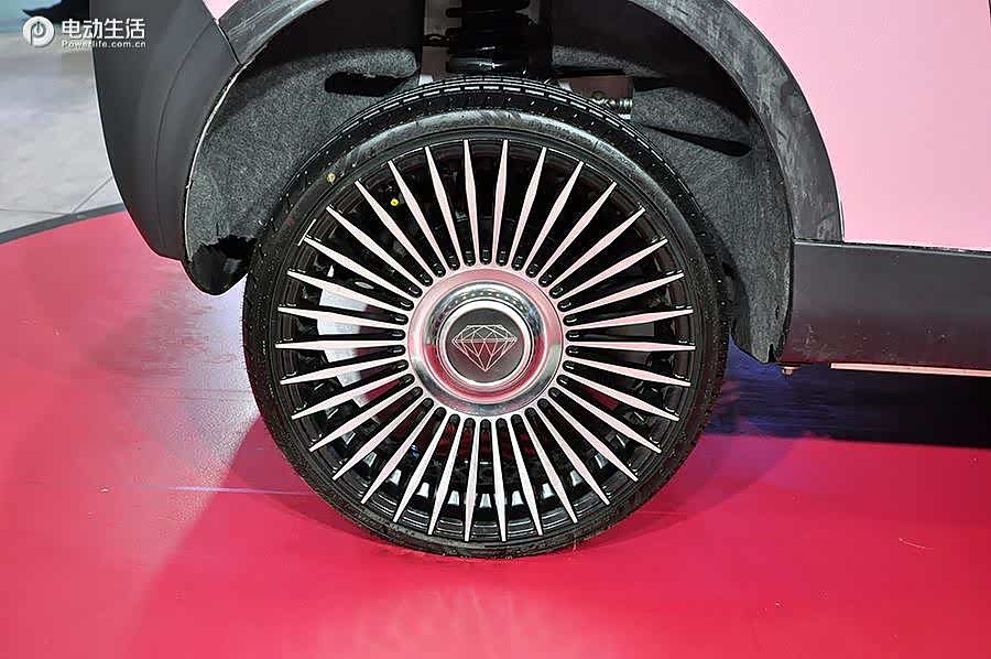 粉红特别版的小蚂蚁还安装了十分浮夸的悬浮轮毂,只是这轮胎的厚度可能还需要进行调整。
