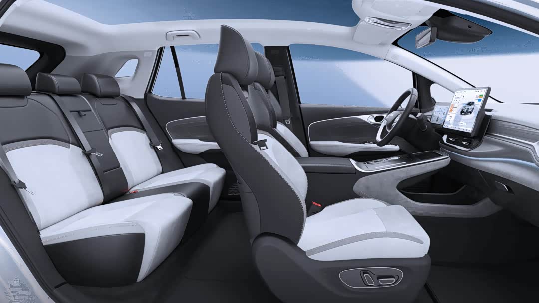 来到车内,广汽埃安AION V Plus最明显的变化就是老款上的连屏设计被分开了,仪表和中控屏分别由两个悬浮式液晶屏组成,其中仪表尺寸12.3英寸,而中控屏升级到了15.6英寸,看上去更有视觉冲击力。双辐式方向盘造型依旧被保留,多功能按键可控制驾驶辅助系统,并搭载NDA智能领航辅助系统。